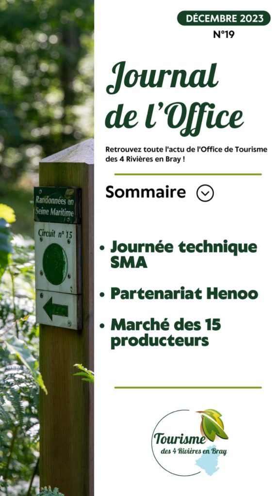 Journal de l'Office Retrouvez toute l’actu de l’Office de Tourisme des 4 Rivières en Bray ! Lire le journal Read more articles Article précédentJournal communautaire 2eme semestre 2023 Article suivantSuivez les travaux de Garenne Espace sur les réseaux Vous devriez également aimer Webinaire Augmentation du coût de l’energie janvier 23, 2023 La CC4R s’engage auprès de Refashion, éco-organisme de la Filière Textile septembre 23, 2022 Nouveau : Espace Usager du Sieom mai 22, 2024